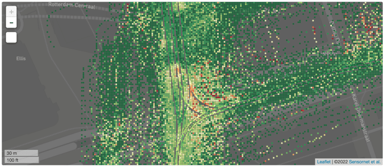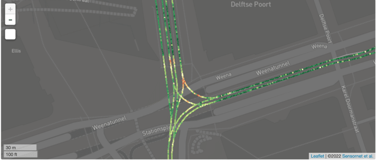Urban canyoning refers to the phenomenon where tall buildings and narrow streets obstruct or reflect satellite signals, leading to degraded GPS accuracy. This is problematic in cities like Amsterdam, Düsseldorf, Budapest, or Prague, where trams operate in tightly built environments. The result is often a drifting GPS trace, which can misrepresent the actual position of a tram by several meters.